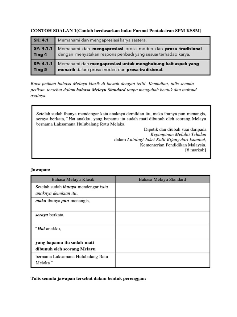 Format Pentaksiran Bahasa Melayu Kod 1103 Spm Mulai 2021